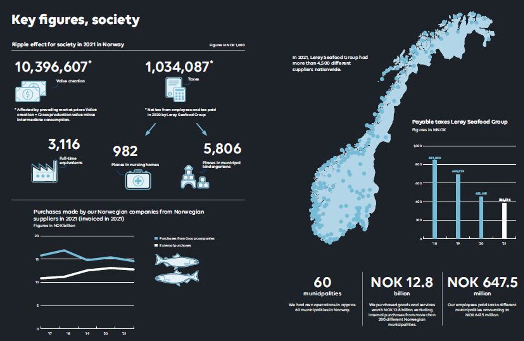 Purchasing in Norway in 2021 also involved more than 280 different municipalities. Total purchasing in Norway, excluding intragroup, amounted to NOK 12.8 billion.